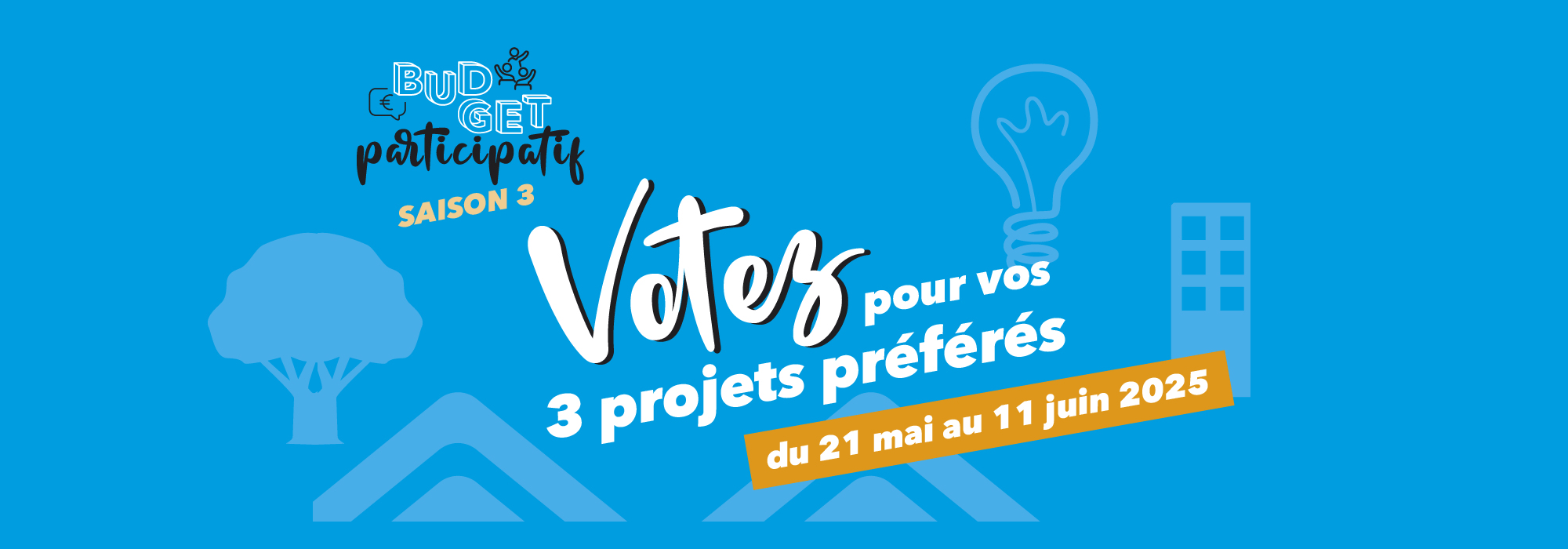 Entre octobre et décembre 2024, 164 projets ont été proposés dans le cadre de l’appel à idées de la 3ème saison du budget participatif. Après analyse technique et financière, 35 projets ont été déclarés recevables. Du 21 mai au 11 juin inclus, c’est le moment de voter pour les 3 projets que vous souhaitez voir se réaliser !